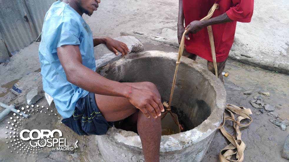 El mango que acciona la bomba de extracción se había deteriorado y los vecinos se veían obligados a sacar el agua a cubos. Por desgracia, esto exponía el agua del pozo a los microbios y contaminaciones externas.