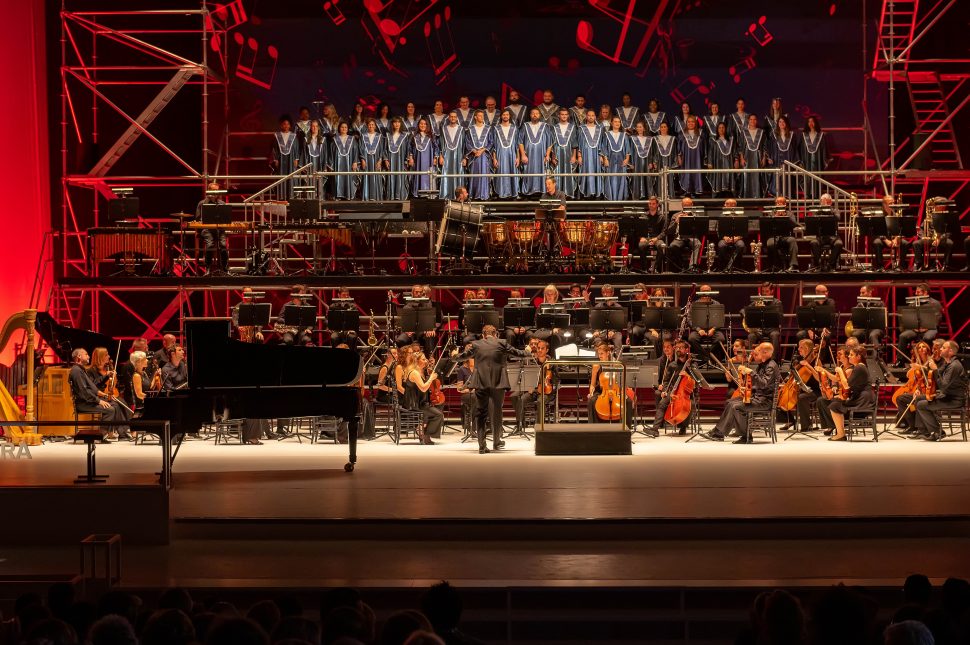 Coro Gospel de Madrid y la Orquesta Sinfónica de Castilla y León interpretando «Somebody to love», Queen, Teatro Real.