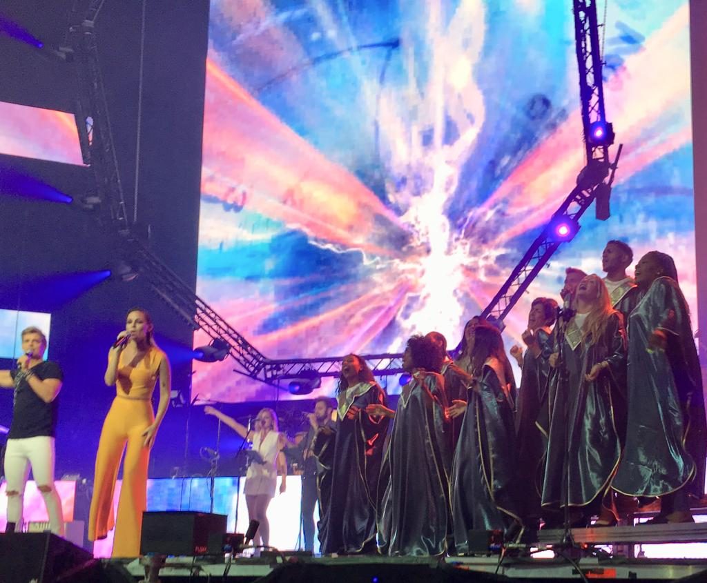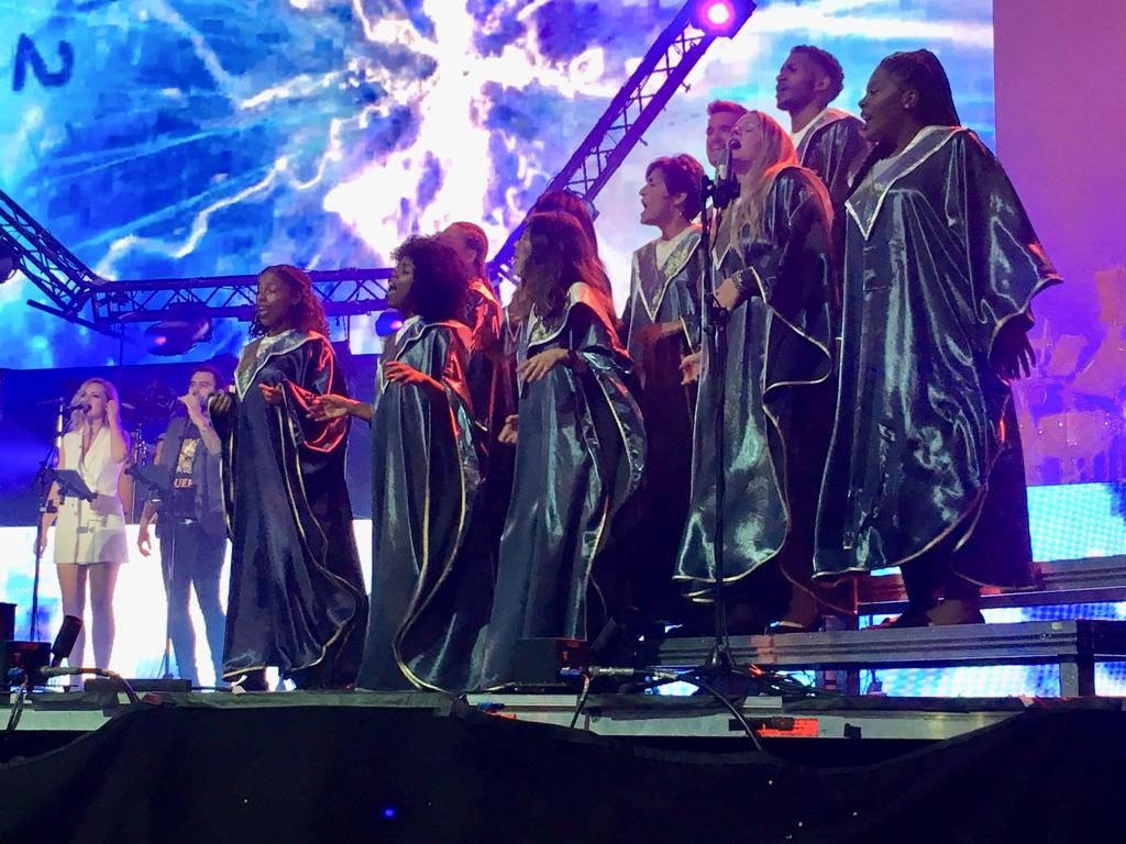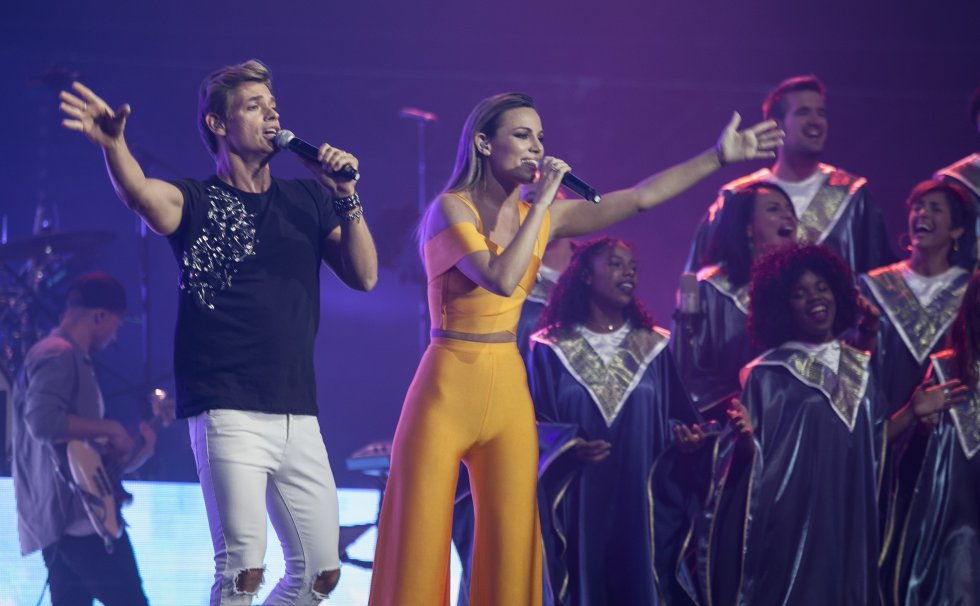 - Coro Gospel de Madrid actuando con Edurne y Carlos Baute. Fuente imagen: Fotografía El País.